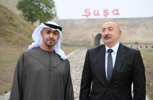 Siyasət Azərbaycanın və Birləşmiş Ərəb Əmirliklərinin prezidentləri Şuşa qalasının önündə foto çəkdiriblər