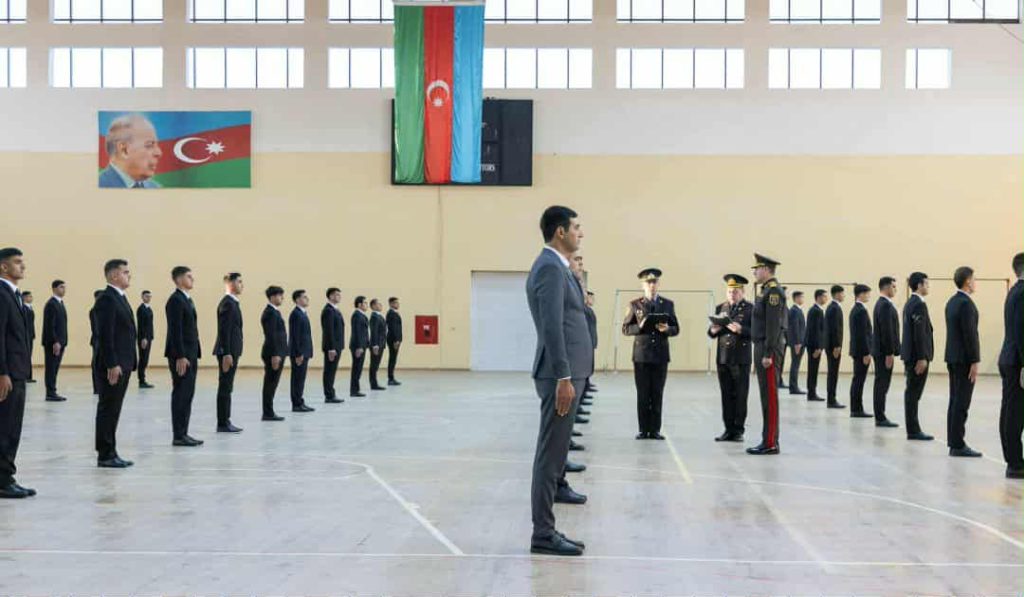 Səfər çərçivəsində general-polkovnik V.Eyvazov polis və daxili qoşunlarda xidmət etmək arzusunda olan gənclərin sıra baxışını keçirib.