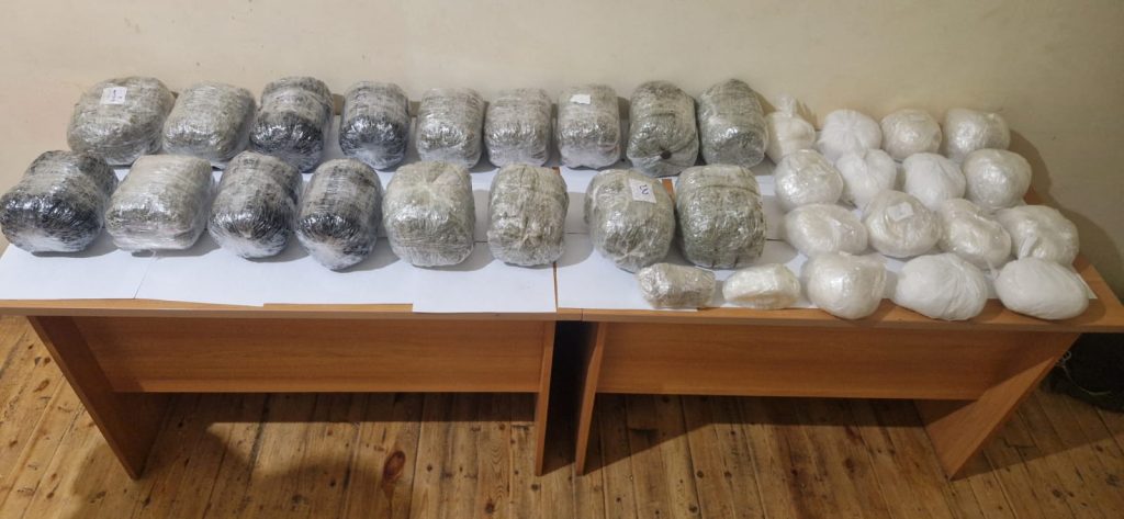 Daxili İşlər Nazirliyinin əməkdaşları ilə birgə keçirilən sərhəd axtarışı və əməliyyat tədbirləri nəticəsində ərazidə sərhəd pozucularına məxsus 3 (üç) ədəd bağlamada ümumi çəkisi 33 kiloqram 900 qram narkotik vasitə və digər maddi sübutlar aşkar olunaraq götürülüb.