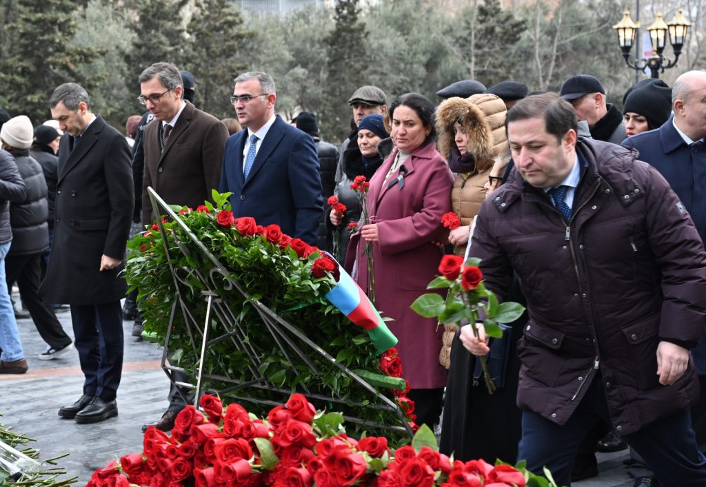 Milli Məclisin kollektivi Xocalı soyqırımı qurbanlarının əziz xatirəsini dərin ehtiramla yad edib, abidənin önünə gül dəstələri düzüb.