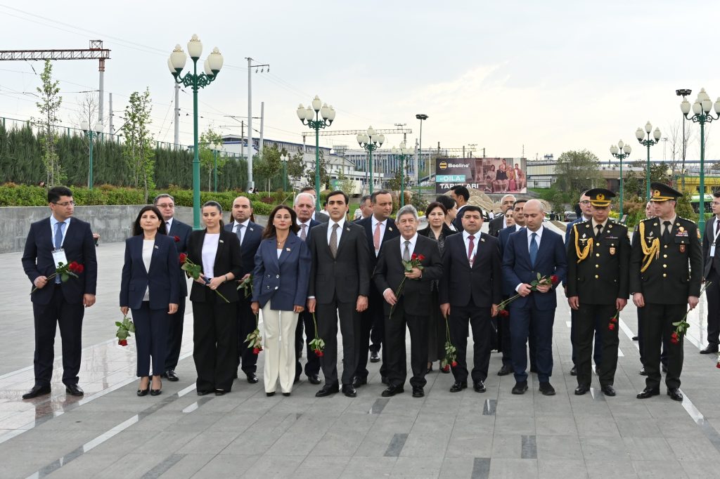 Spiker Sahibə Qafarova və nümayəndə heyətinin üzvləri meydanda ucaldılan Heydər Əliyevin abidəsini ziyarət ediblər, abidənin önünə gül dəstələri düzüblər.