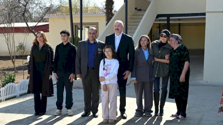 Sonra Prezident İlham Əliyev, birinci xanım Mehriban Əliyeva və qızları Arzu Əliyeva Xocavənd şəhərinə köçmüş İlqar Həsənovun evində oldular və söhbət etdilər.