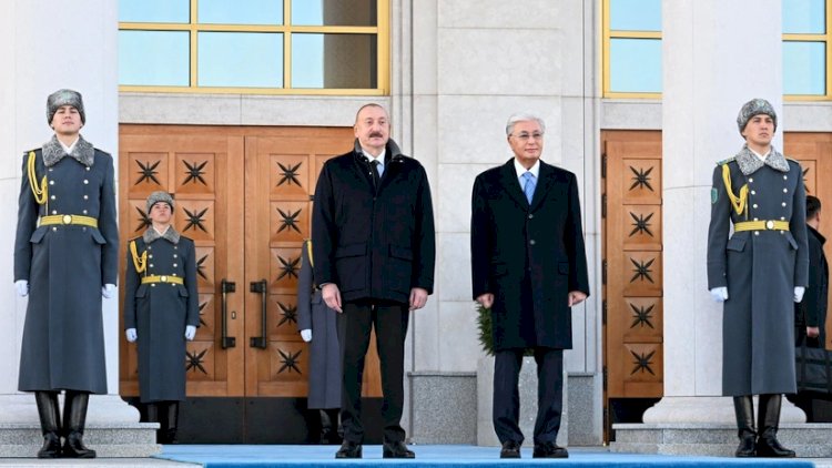 Dövlət başçısını Qazaxıstan Prezidenti Kasım-Jomart Tokayev qarşılayıb.