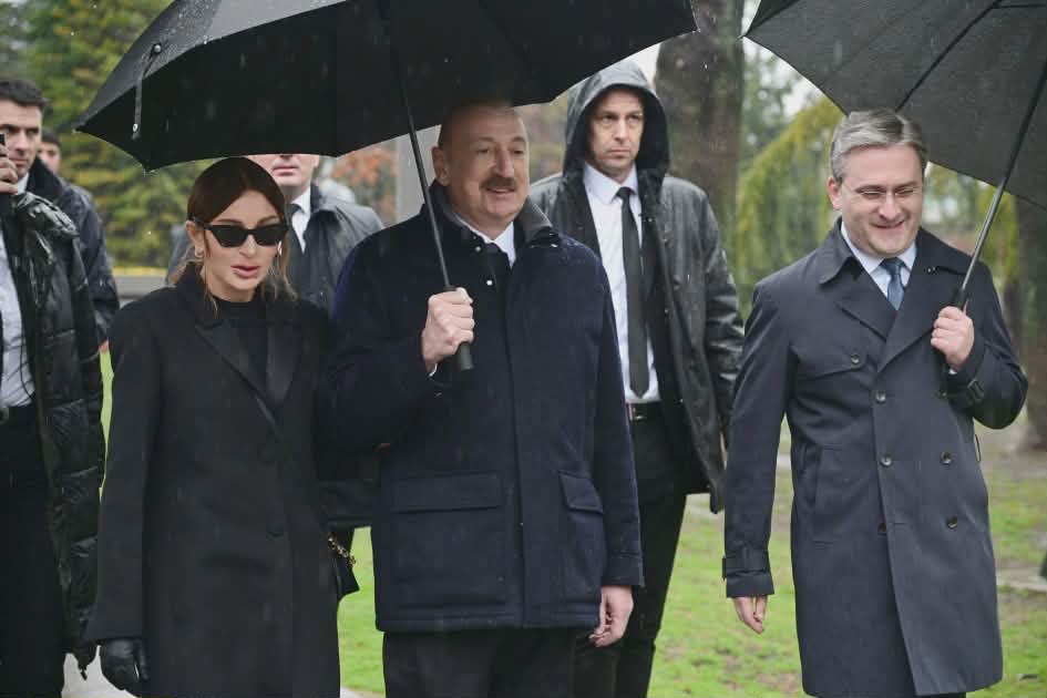 Prezident və xanımı Heydər Əliyevin və Milorad Paviçin abidələrini ziyarət etdilər – FOTOLAR